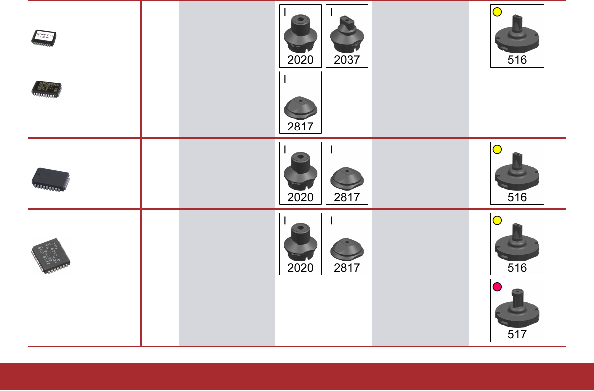 PLCC/SOJ components C&P20A/M CPP C&P20 P/M2 Twin Head Component shape [LxWxH (mm)] CS file Nozzle types PLCC 84 [30.23x30.23x4.6] 705 PLCC 100 [35.35x35.35x4.6] 706 PLCC 124 [42.95x42.95x4.6] 707 5 - 4 www.asm-s…