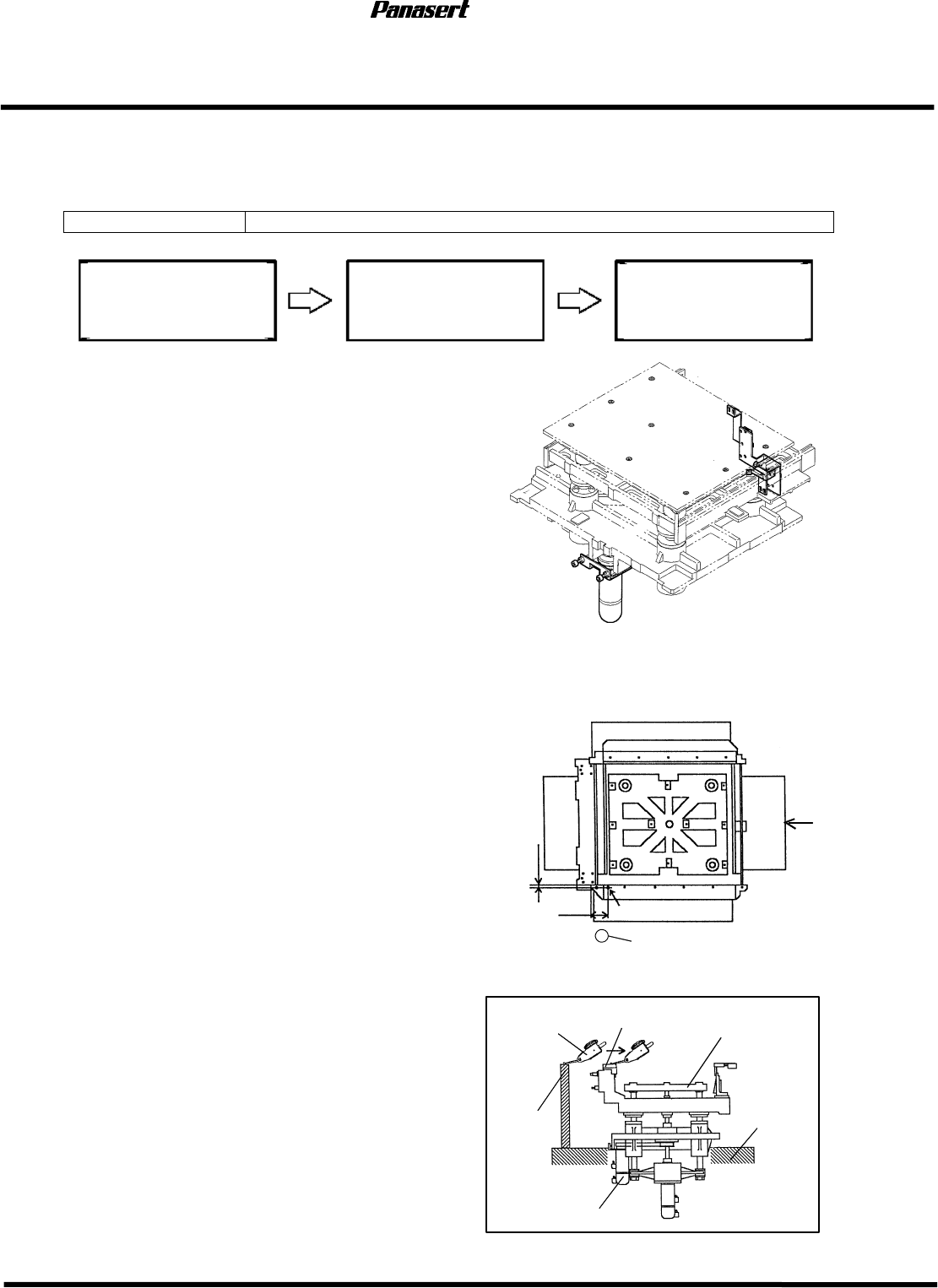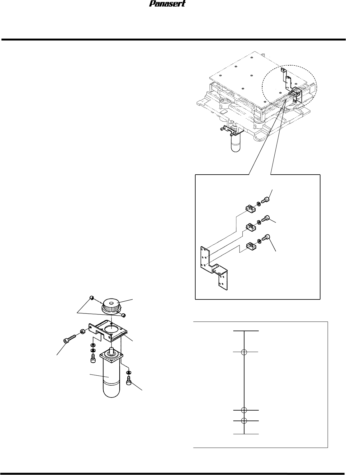 SPF 服务手册 4.2 下部组件:其它 4.2-5 D54SCC-W 4-600-A0 8. 规格值以外时,将主操作盘上的“ SERVO MOTO R ”(伺服电机)置于 OFF 。 9. 移动工作台,使其位于易于调整的位置。 10. 使导轨与百分表接触。 11. 将百分表设定为 0 。 12. 拧松栓。 13. 旋转皮带轮,调整高度。 14. 拧紧栓。 15. 再次确认测定高度治具和导轨的高度。 16. 调整挡片,使其进入原点传感器…