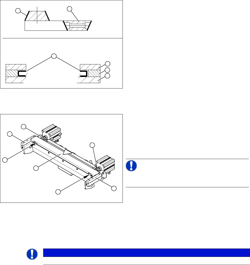 ► Place the 2 new spacers (4) to the left and right of the moveable blade. The spacer side marked with