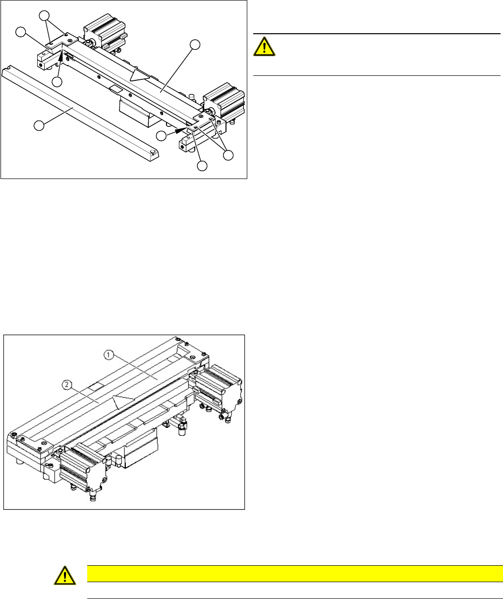► Push the spacers (with inserted shim) as far as possible in the direction of the moveable blade. The