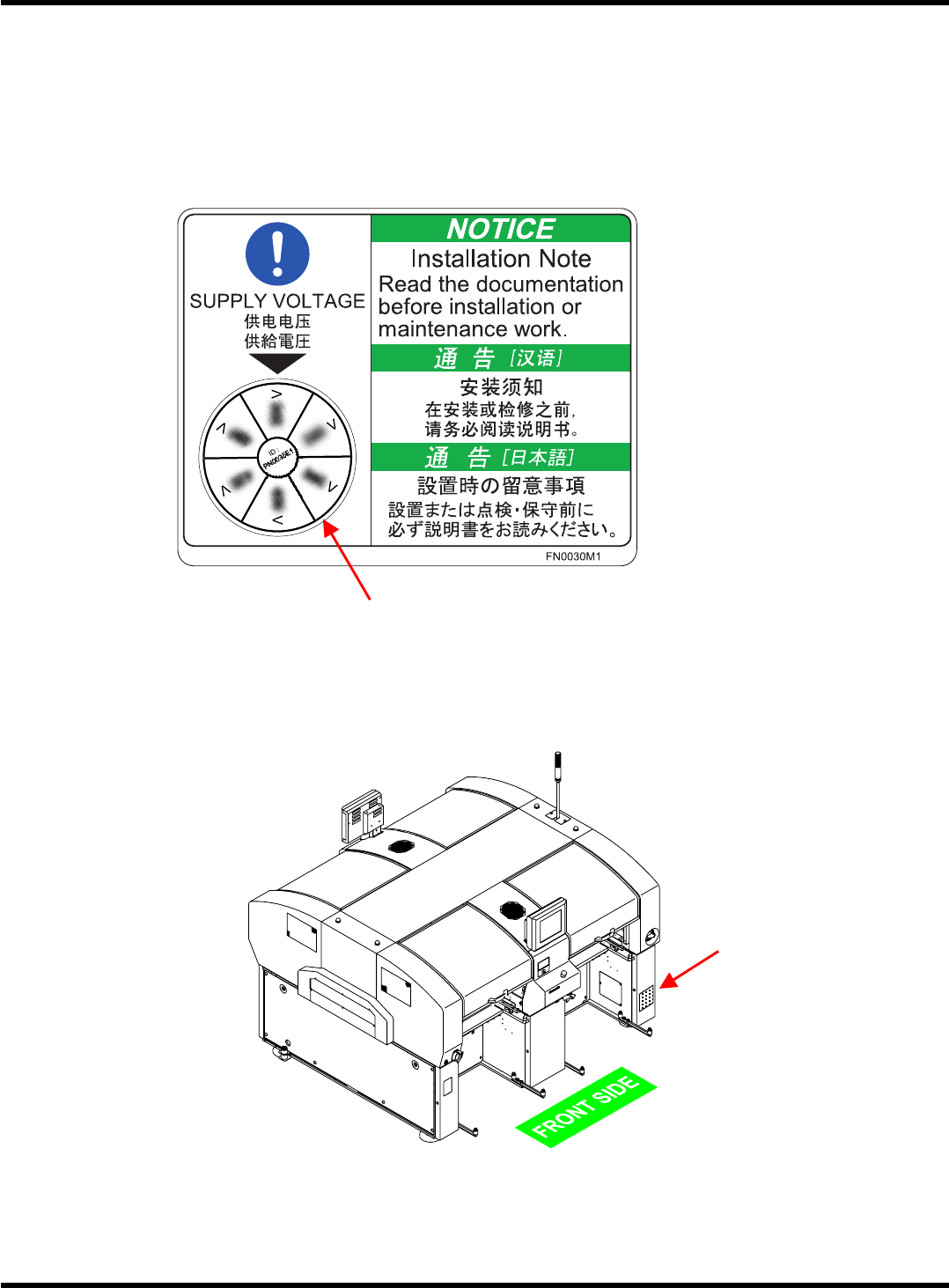 CM602-L 安装手册 1.2 设置步骤 Pa ge 1-14 1.2 设置步骤 通知 有关本机的设置请按照专业人员的指示进行。 在此对其设置步骤进行了简要的说明。 关于再次配置,请向服务中心咨询。 1.2.1 本机的安装 • 参照由客户准备的配置 图,沿着所划的基准 线安装本机。 在前工序和下一道工序 之间基板应搬送顺畅 ,对机器的位置进行 调整。 ( 方向及搬送高度 ) • 请调整相邻的机器的传 送带间隔,使其为 1 mm ~ 5…