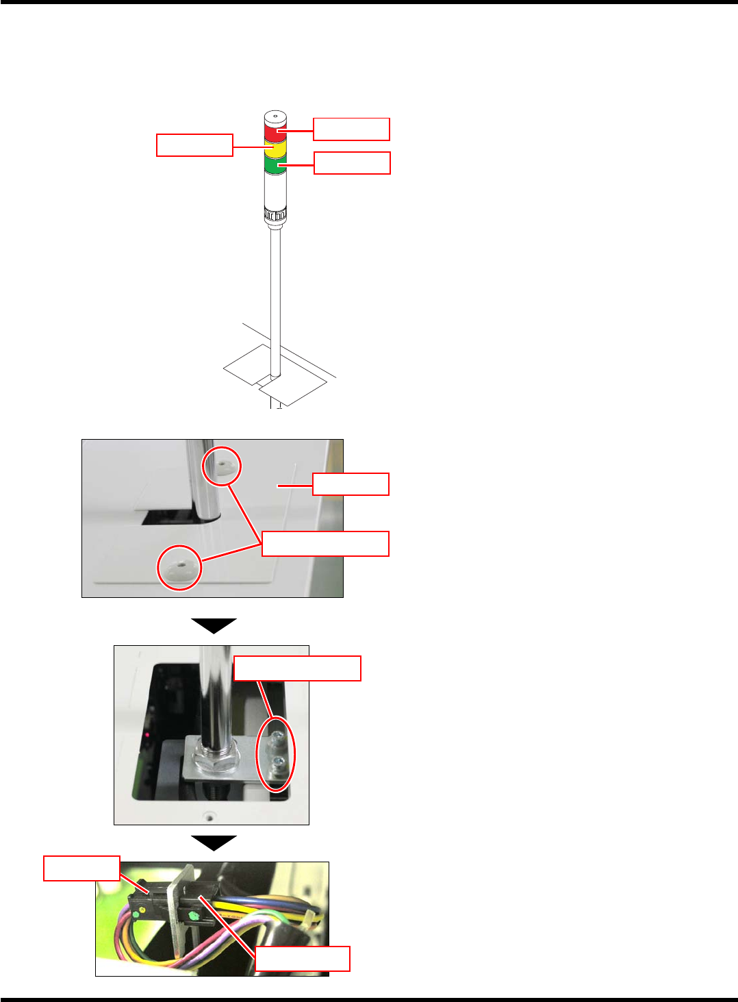 CM602-L 安装手册 1.2 设置步骤 Pa ge 1-17 1.2.4 状况显示灯 (3 段信号塔 ) 的安装 按照如下顺序安装状况 显示灯 (3 段信号塔 ) 。 ∗ 关于线路规格,请参照 “1. 3.2 线路信号规格 ” 连接信号电 缆。 CM 602-L 1. 取下状况显示灯 (3 段信号塔 ) 的盖。 • 拆下盖的安装螺栓,取 下盖。 2. 将状况显示灯 (3 段信号塔 ) 安装在主体 上。 • 从盖的外侧拧紧六角孔 …