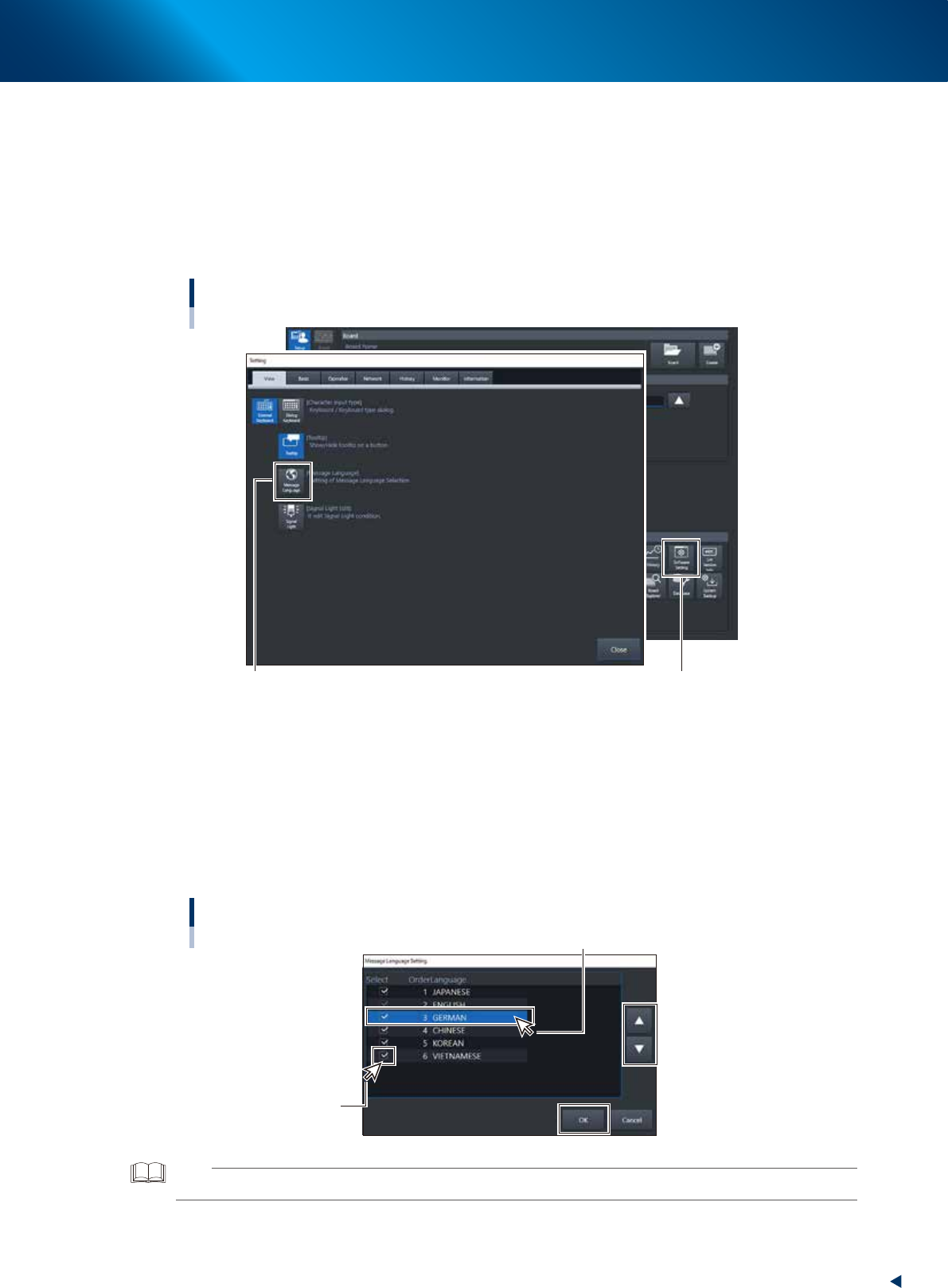 3. Press the [OK] button. Then the "Message Language setting" screen is closed, and the changed