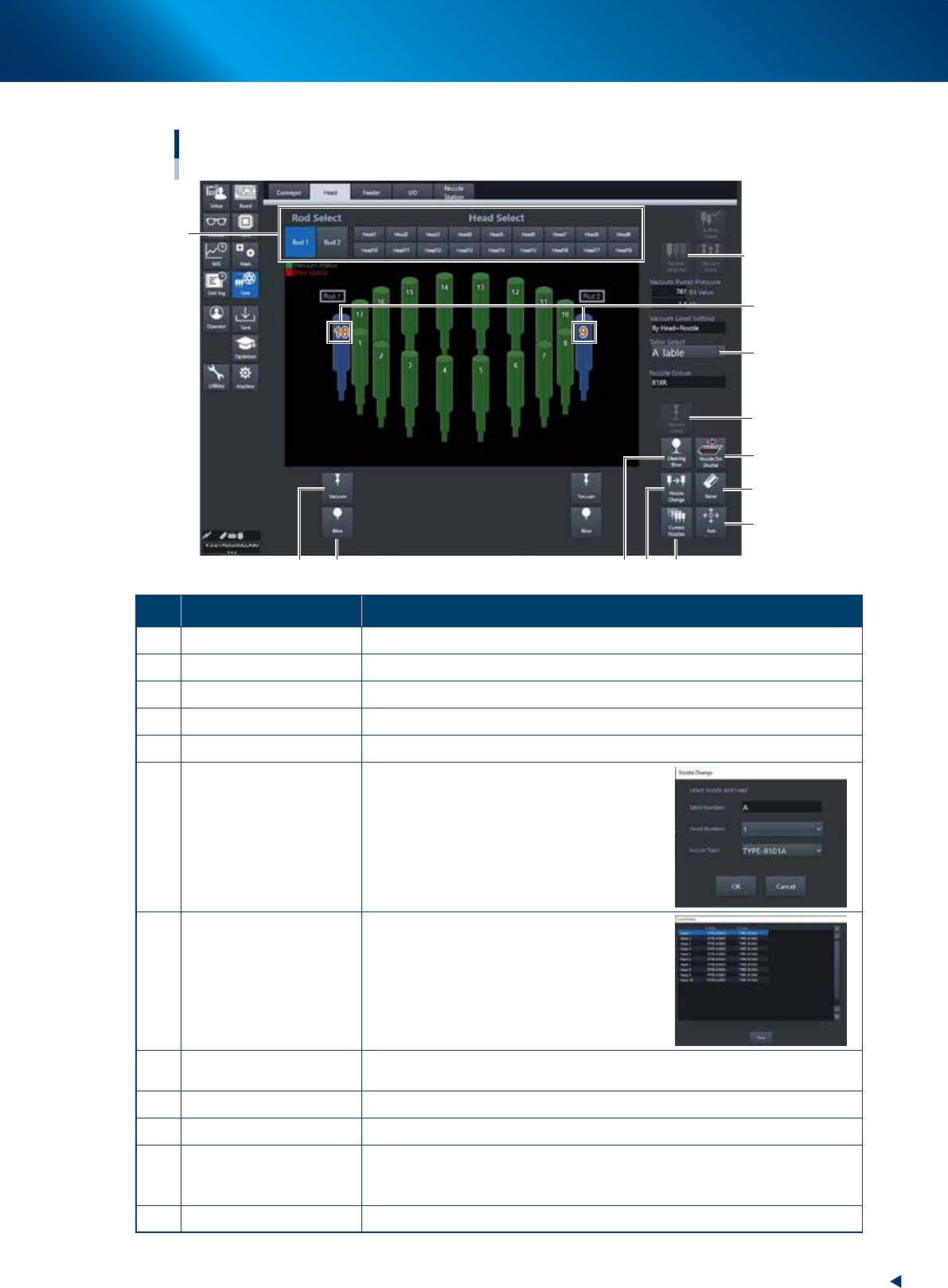 1 Vacuum Turns the vacuum of each head on or off.