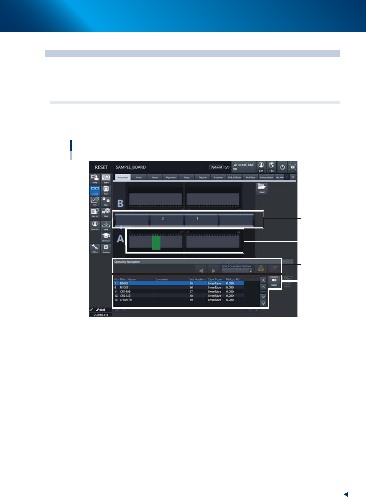This area displays the feeder at the feeder set position that is registered on [Parts] - [Pick] tab - A: