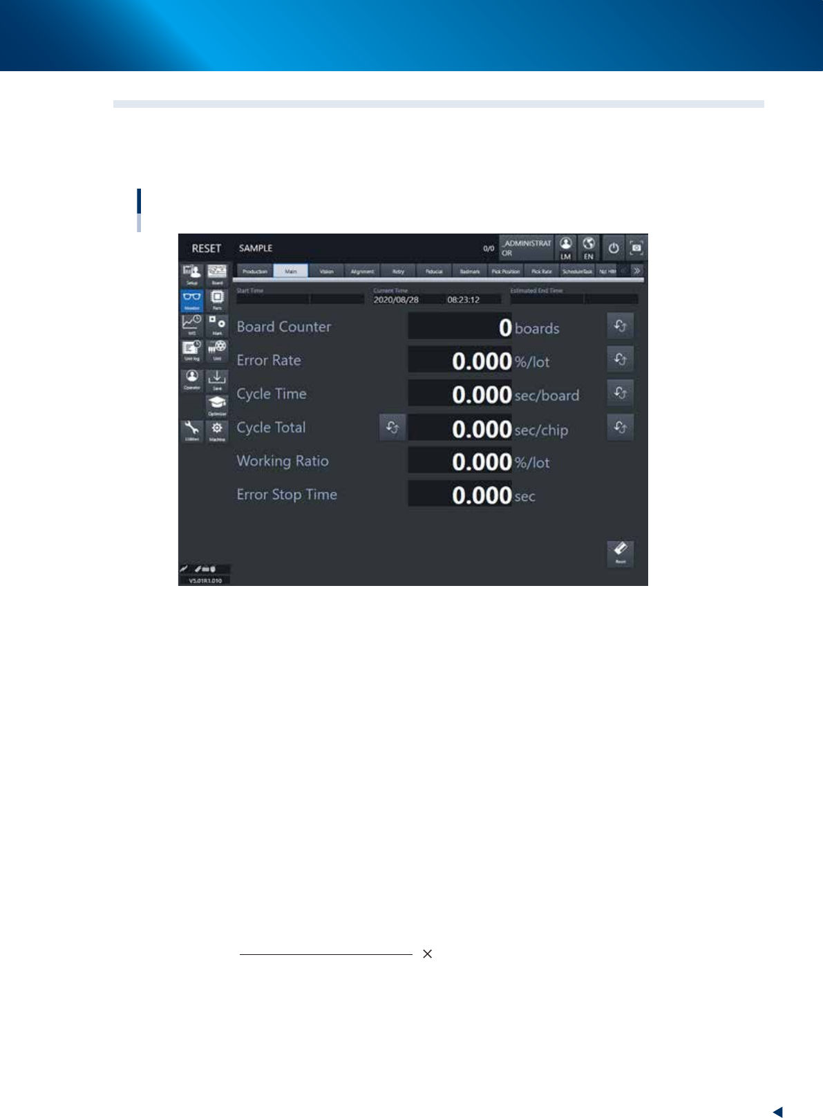 board data. The board counter counts only the boards completed the mounting. Pressing the button on