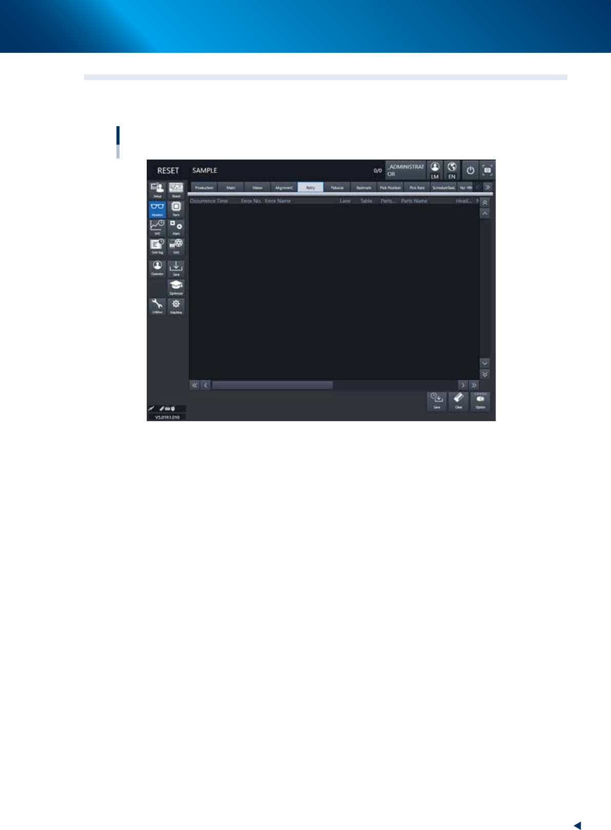The recognized image just before the machine stops due to an error can be checked and saved.