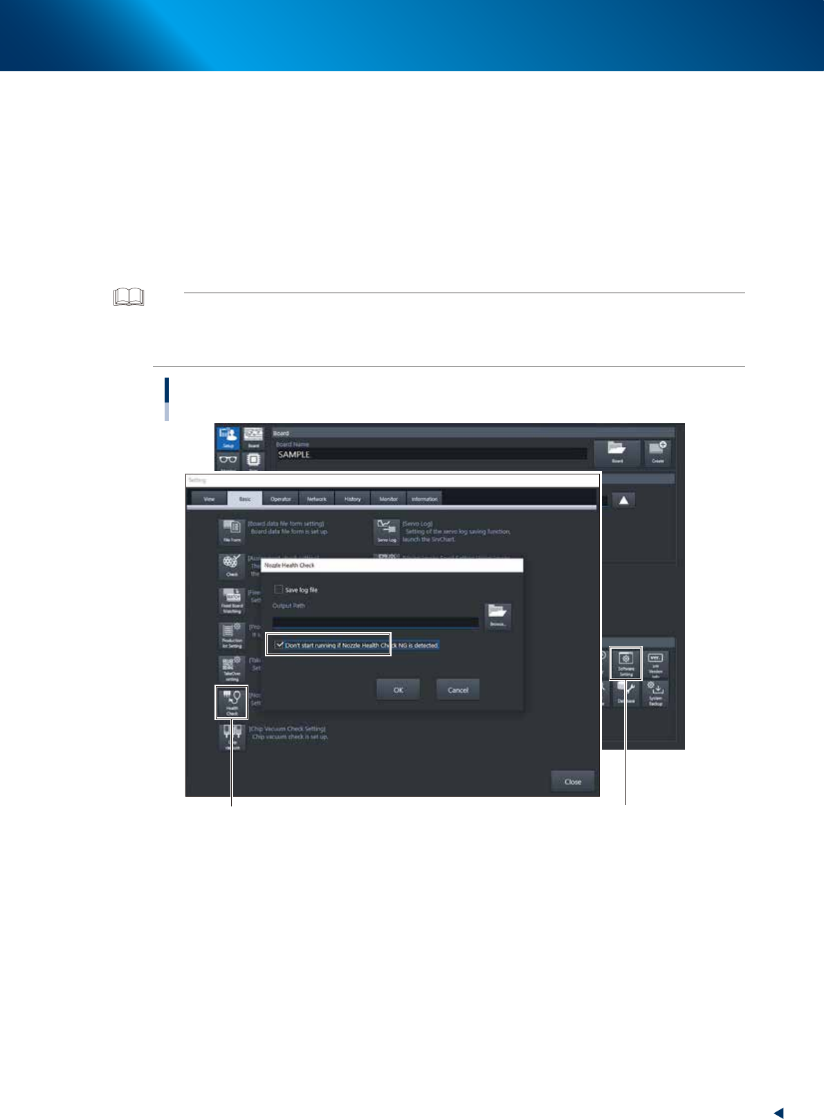 If ticking the checkbox of “Don’t start running if Nozzle Health Check NG is detected” on “Setup” screen – “Software