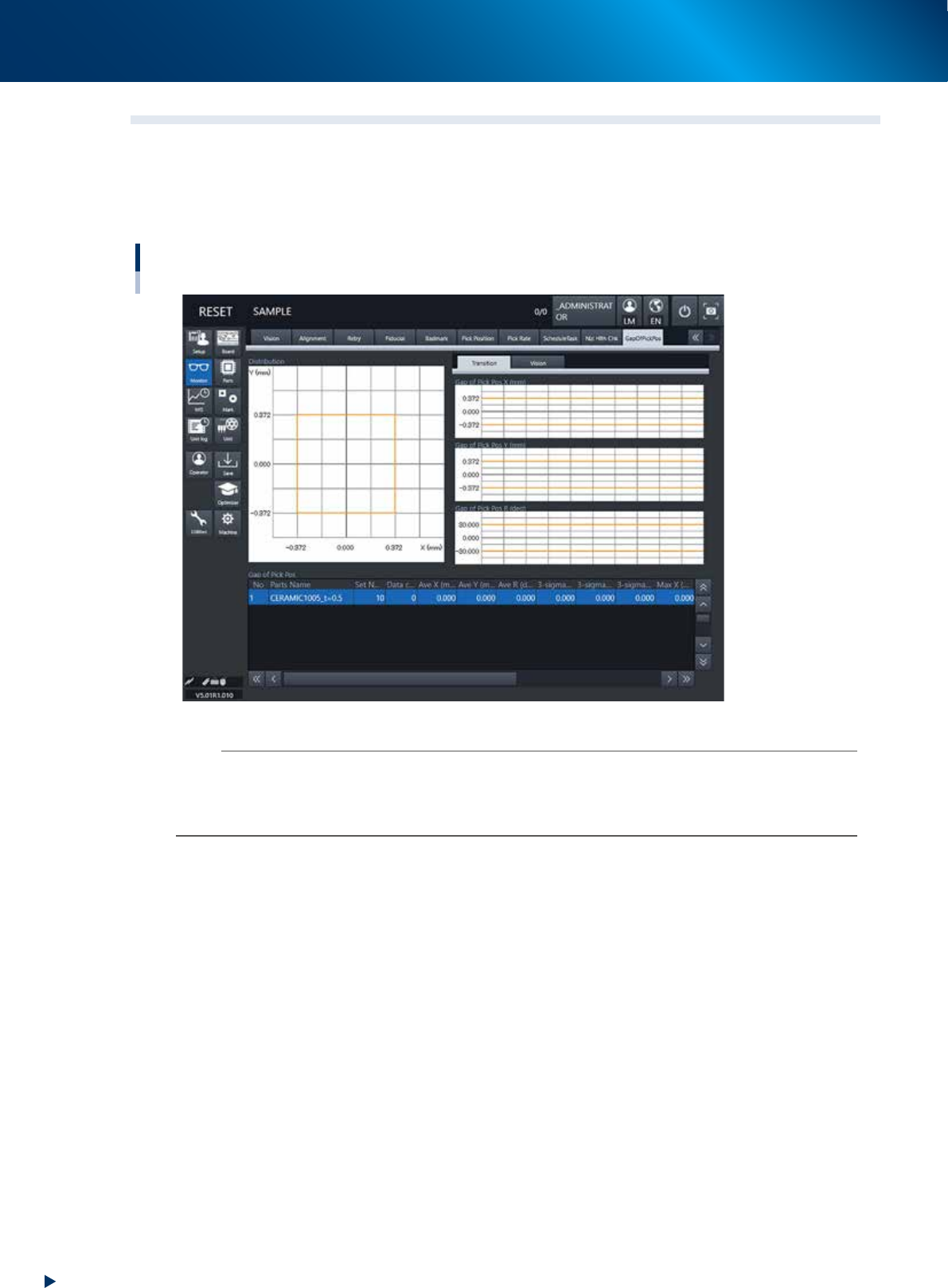 3. Displaying the production monitors 2-46 Chapter 2 Basic operation 3.12 Gap of pick-up position Displa ys the gap between the component center calculated by component recognition and the center of camera field angle, f…