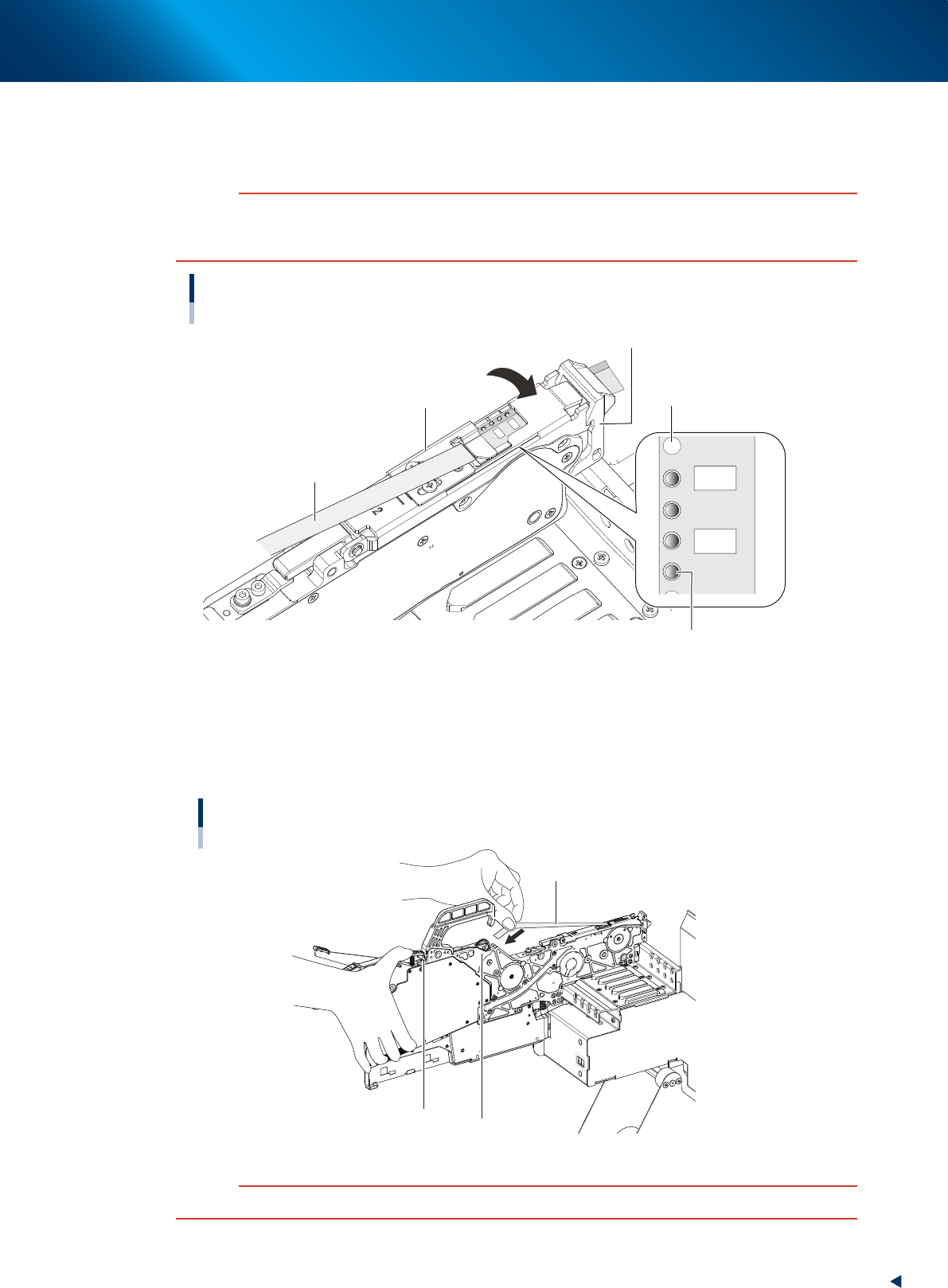 During this operation, be careful not to be winded your fingers in the roller unit while taking up the cover tape.