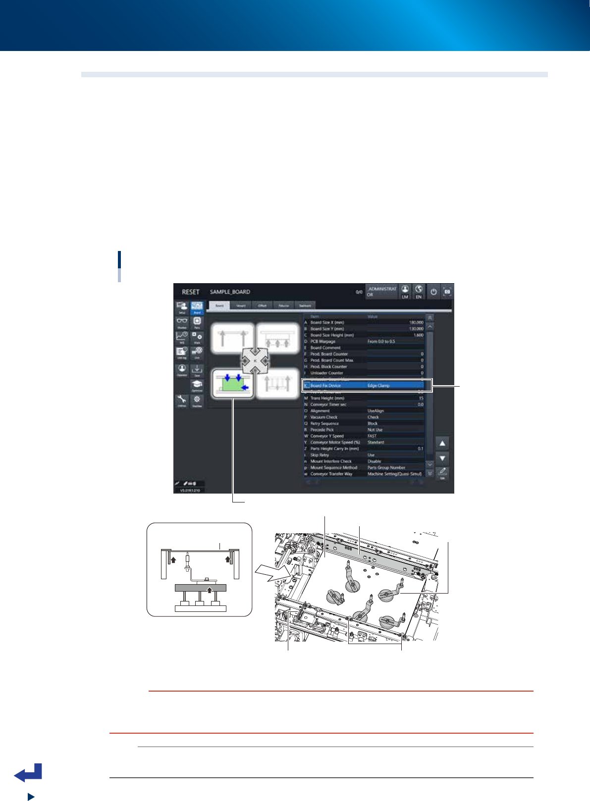 Normally, the machine follows the “Edge clamp” method to clamp a board. The procedure is as follows.