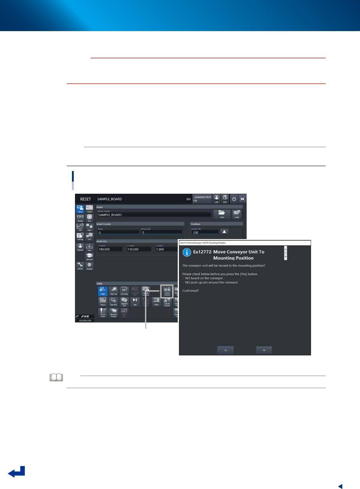 2. The message "Move Conveyor Unit To Mounting Position" is displayed, and then press the [Yes]