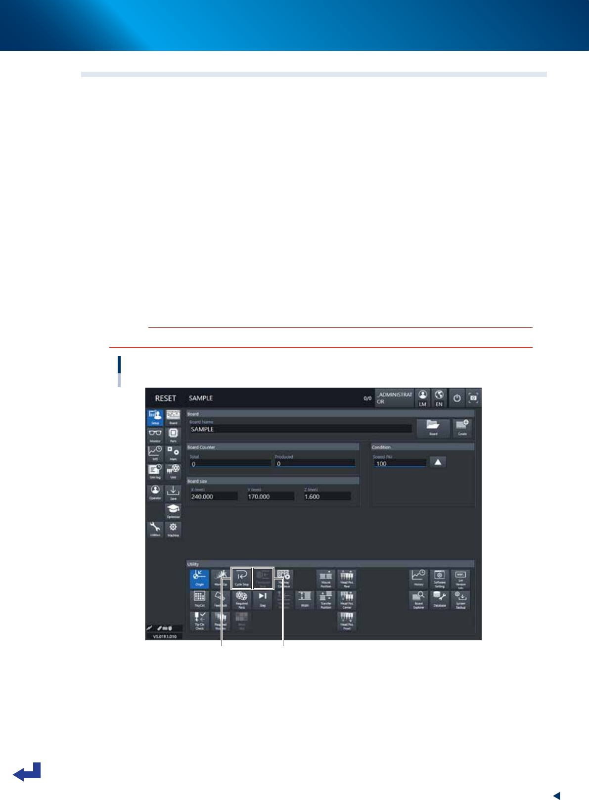 Use this button when you want to end production after completing component mounting on the