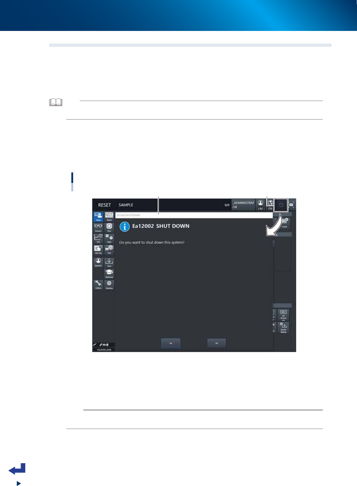 Press the [Yes] button on the “SHUT DOWN” screen.