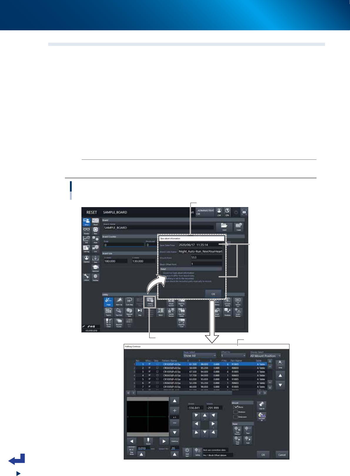If resuming to mount a board that has been reset due to an error occurrence in the middle of production or