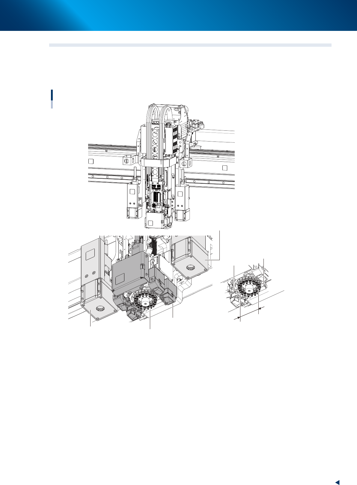 3. Head unit 1-11 Chapter 1 Unit names and functions 3.1 Component pick-and-place head 3.1.1 RM Head unit RM head unit employs rotary mec hanism and it has 18 pick-and-place heads per one unit. RM head unit has two fiduc…