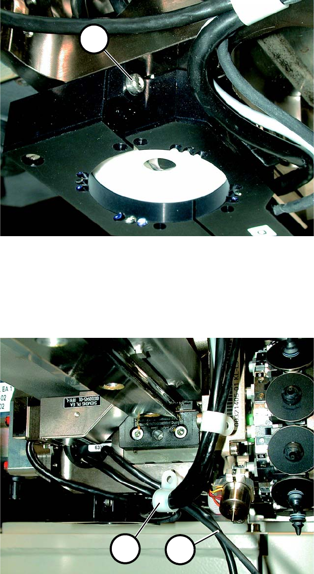 ► S23: Schrauben Sie die Kabelschelle (1 in Abb. 3 - 6) ab und drücken Sie beide Kabel (2 in