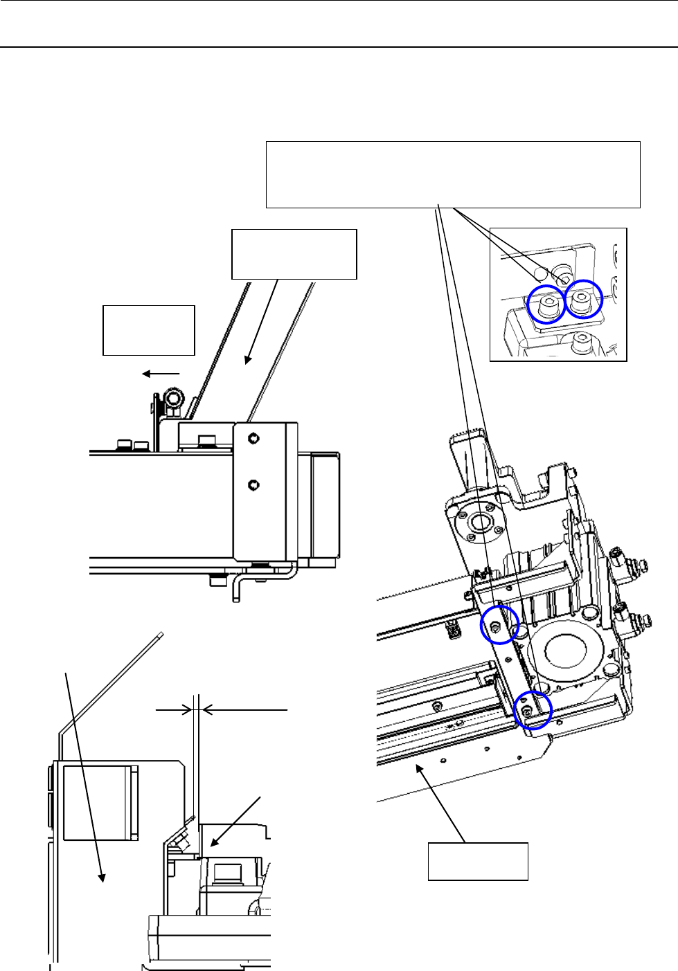 维修调整要领书 9-4 10 ) 请拆下把切带机装置固定在切带机装置支承板上的螺丝 ( 带垫片内六角螺栓 M5 L=10) 。 11 ) 请把切带机装置朝身前滑动拆下。 切带机下面 切带机装置止动螺丝
