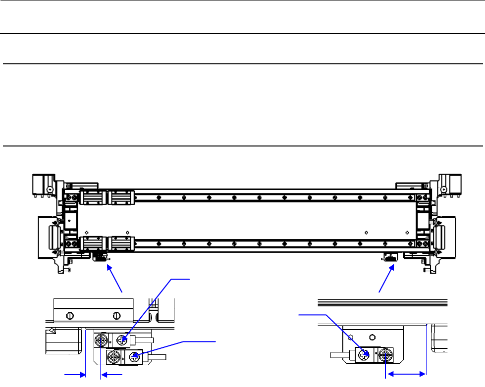 1) 松开用于固定 Y 限位传感器托架的螺丝,使得距限动器橡皮的尺寸成为图示的位置。