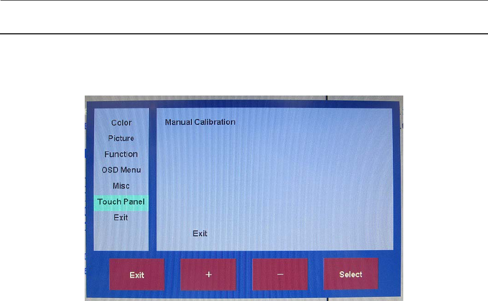 2) 操作 OSD 的“+”,“-”,使光标移动至“Touch Panel”。