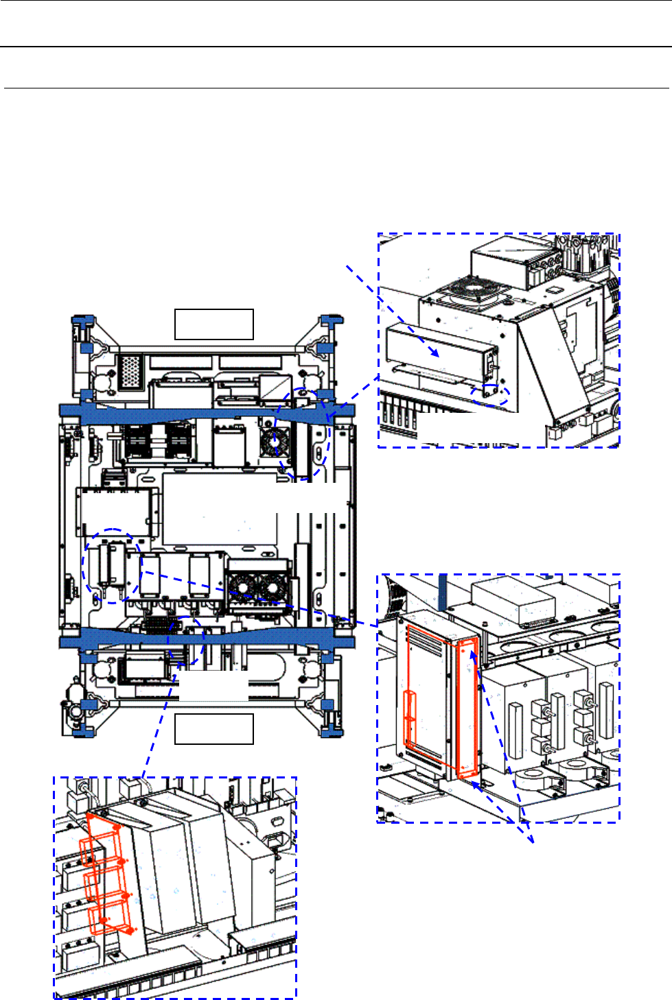 在电气设备箱内,共面性电源(电源箱)、共面性 CPU 板、监视器切换板的配置如下图所示。
