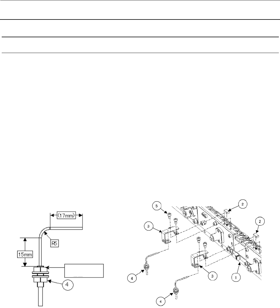注) 调整传感器位置后,电缆要用束线带固定,注意防止过于拉紧或过于松弛。弯曲④光纤的位置在