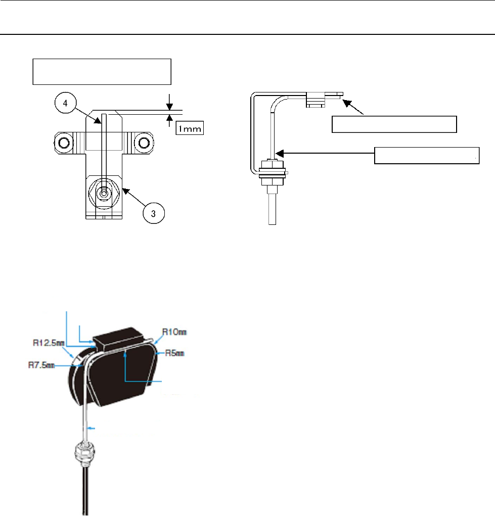 注) 调整传感器位置后,电缆要用束线带固定,注意防止过于拉紧或过于松弛。弯曲②光纤的位置在
