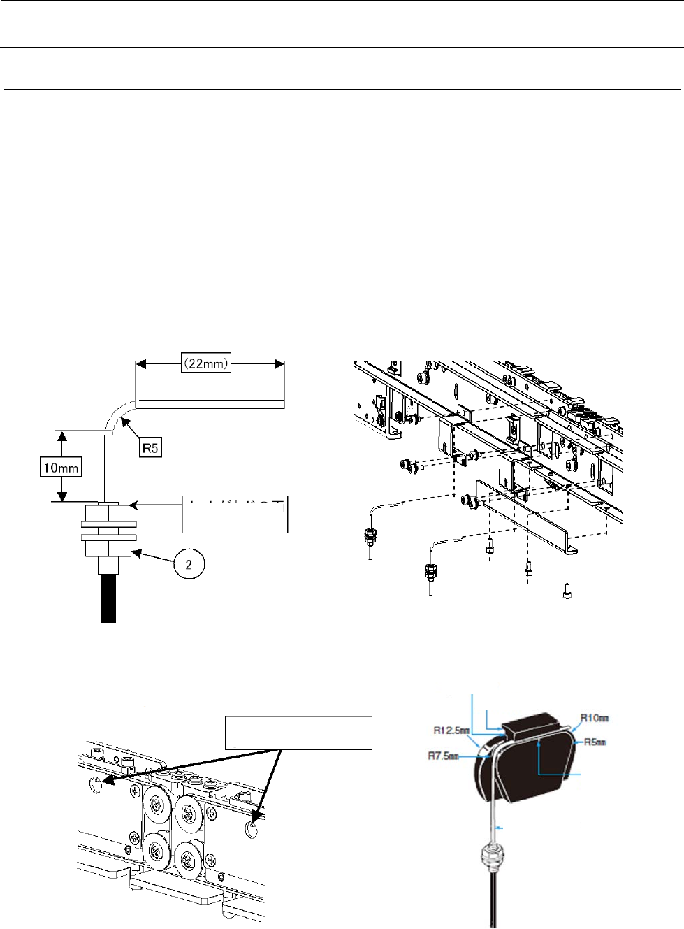 维修调整要领书 5- 14 5-7 - 2 后侧 STOP 传感器光纤的更换 1 ) 请从传感器放大器中拔出光纤。 2 ) 松开④螺丝 3 个,把②后侧 STOP 传感器光纤连同③ FIBER_BRACKET_R 一起拆下。 3 ) 松开②后侧 STOP 传感器光纤的螺母,从③ FIBER_BRACKET_R 中拆下②后侧 STOP 传感器光纤。 4 ) 把新的②光纤如下图所示弯曲。请使用光纤附带的治具。 5 ) 如下图所示把②光纤组装…