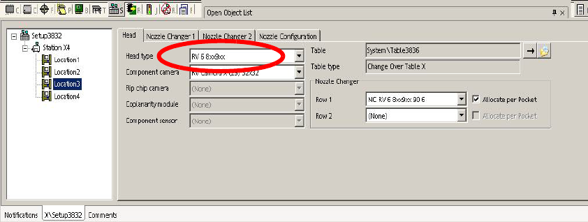 : Enter the new placement head type, the camera type and the nozzle changer configuration for