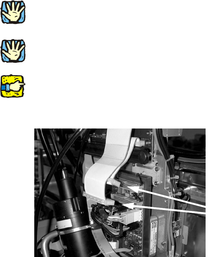 : Disconnect the two ribbon cables.