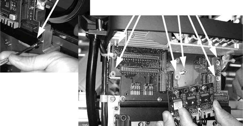 : Lösen Sie die Schrauben der Leiste unter der Kopfadapter-Platine und die Schrauben der