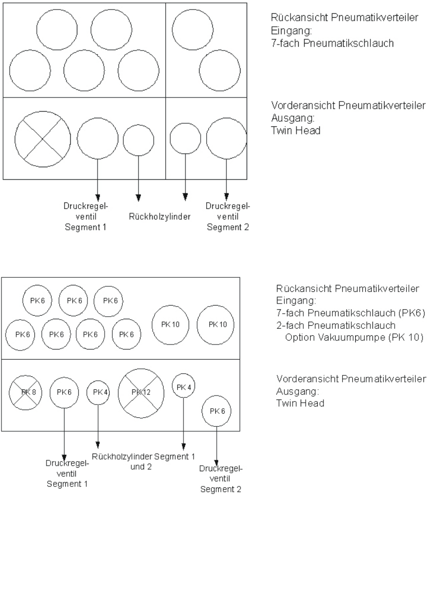 Es gibt zur Zeit zwei unterschiedliche Pneumatikverteiler, die abhängig vom eingebauten Kabel-