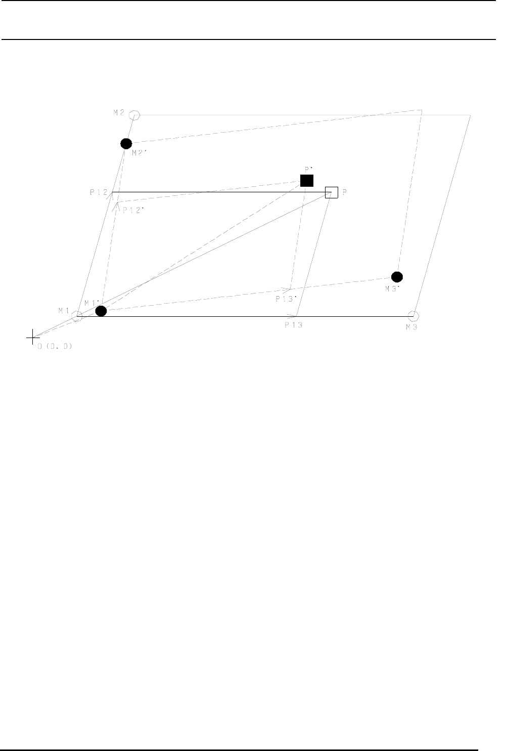 此时,从P向斜交坐标轴平行地引的直线和连接M1、M2的直线,连接P12、M1、M3的直线的焦点作