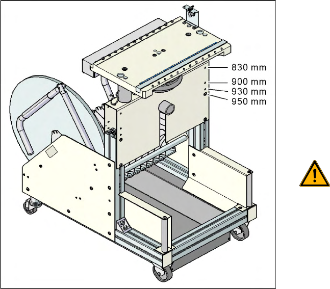X Lift or lower the component trolley table to the required height. Make sure that the hole for the