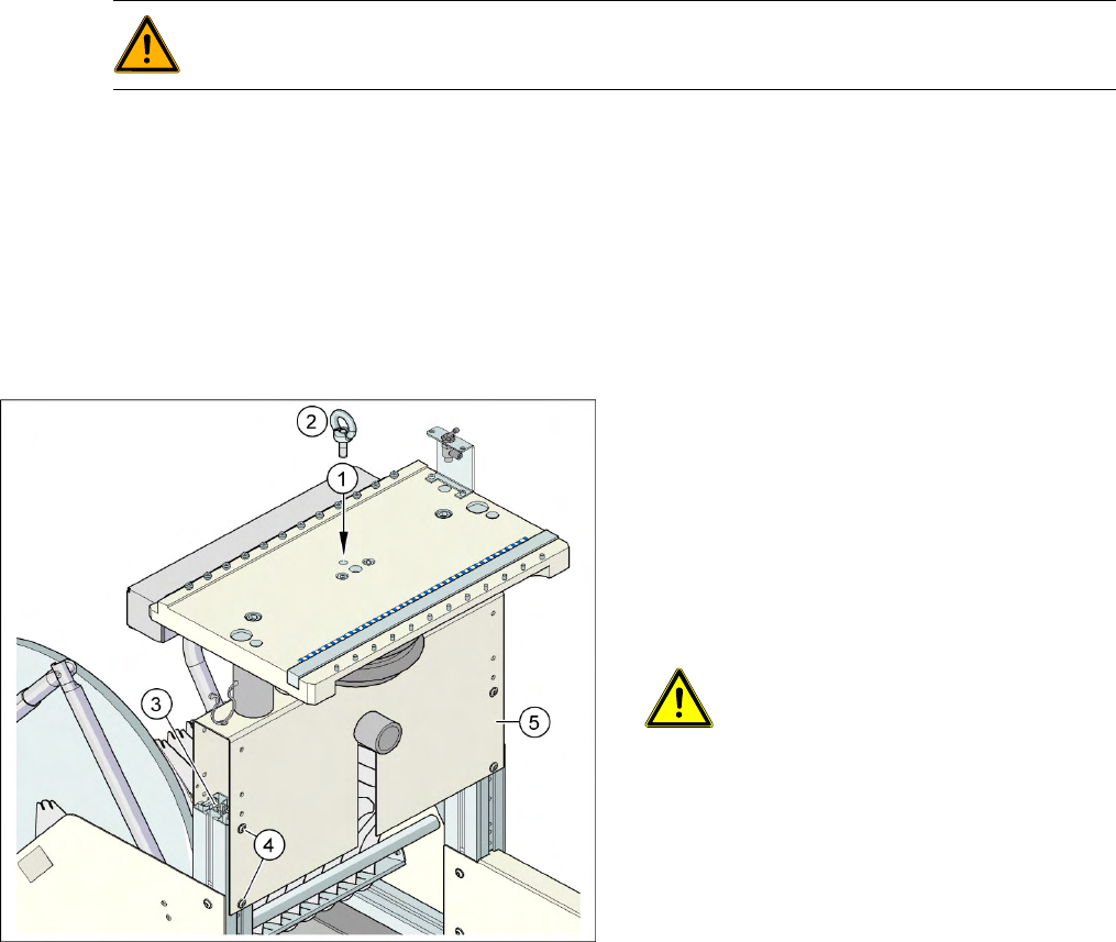 X Screw the eyebolt into the M12 hole provided (1) on the component trolley table.