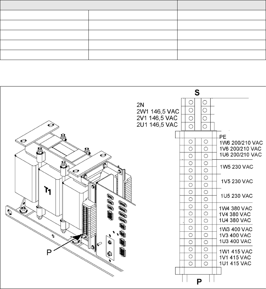 3 x 415 VAC ± 5 %, 50/60 Hz 1U1, 1V1, 1W1