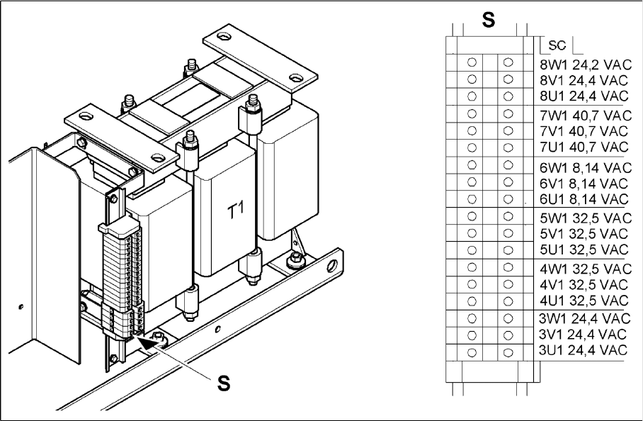 Transformer T1 supplies the following voltages on the secondary side: