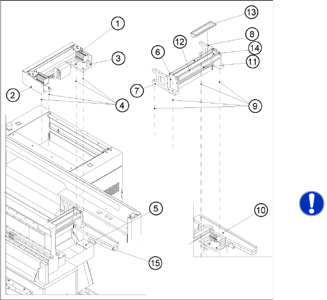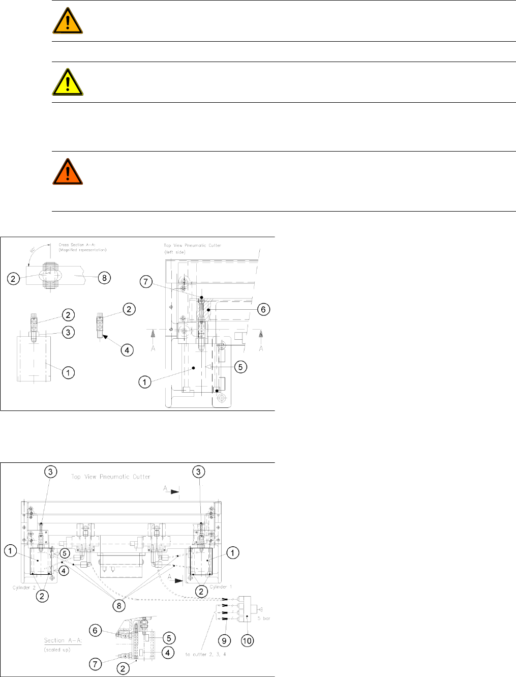 1 Short-stroke cylinder (1 or 2) 6 Slide surface of the movable blade