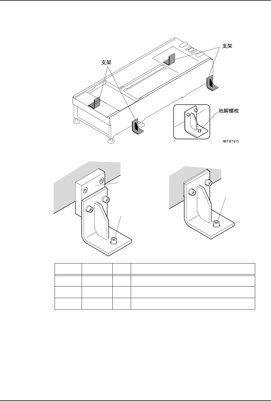 注意 ) 不要使在前侧水平调整螺栓上受到的机器重量太大,以免影响到基座的水平度。该前侧螺栓为