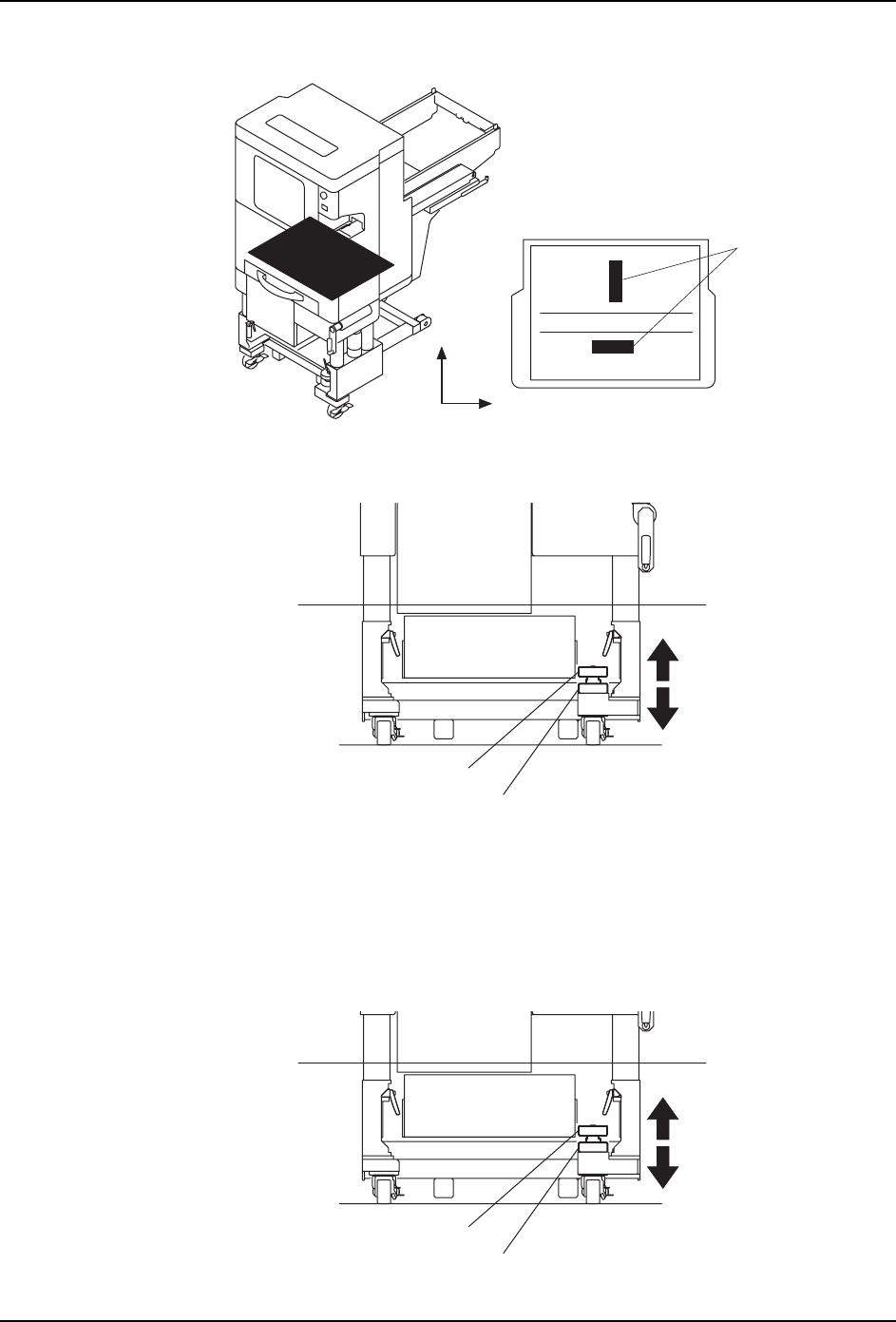 QD139-03 3. 机器的安装 NXT II 安装手册 55 8. 向右拧紧锁定旋钮。 9. 旋转折叠式手柄,通过调节料盘单元 -L 的高度来调整 Y 轴方向上的水平度。 注意 ) 由于料盘单元 -L 处于被机器夹紧的状态,大幅度调整高度可能使连接销损坏。请慢慢小心的 进行调整。 10.拧紧左右的锁定杆 。 11.锁定左右的脚轮。 ᡬᓣᶘ 㛮䕂 << 1;7078D