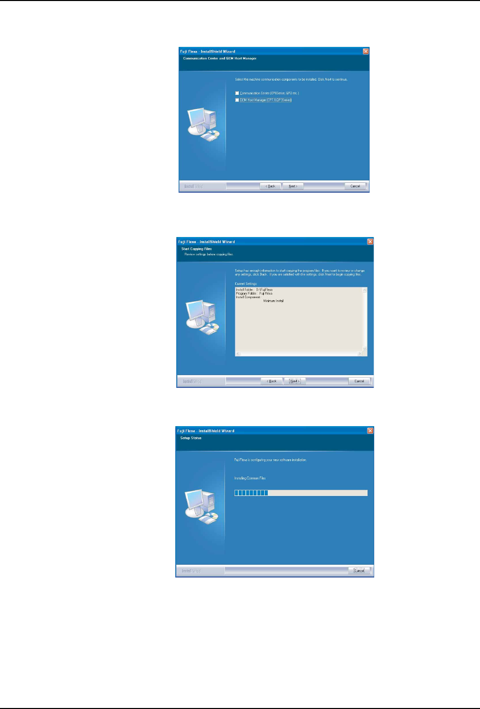 5. 安装 FUJI 附加软件 QD139-03 72 NXT II 安装手册 10.不需要选择安装的 通讯部件。不做检查 单击 [ 下一步 ]。 11.确认安装的设定内 容,单击 [ 下一步 ]。 12.执行安装。 01SET-021 1E 01SET-0212 E 01SET-0213E