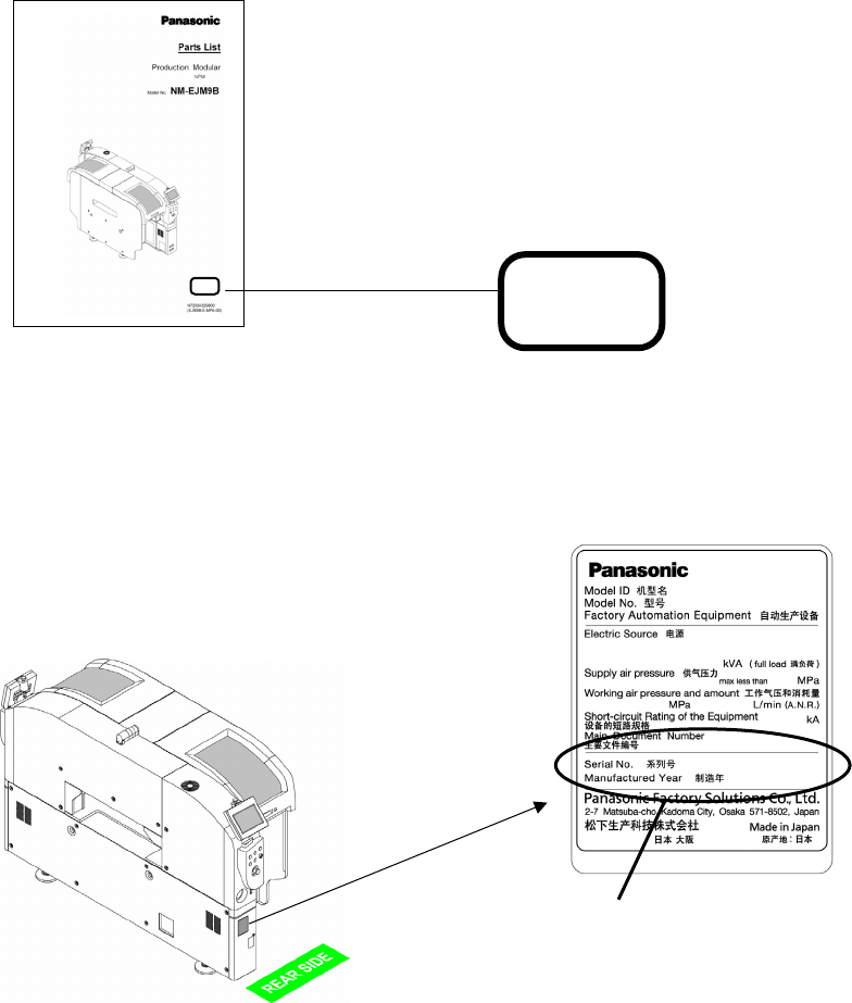 ■ 封面上贴有标示生产编号 (Serial No.) 的序列号标签。当您购买零部件时,请确认其编号是否一致与粘