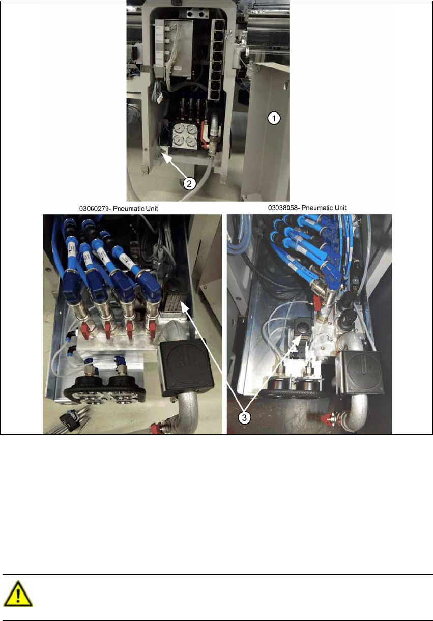 X Release the module (2) and pull the pneumatic supply out of the machine by about 400 mm.