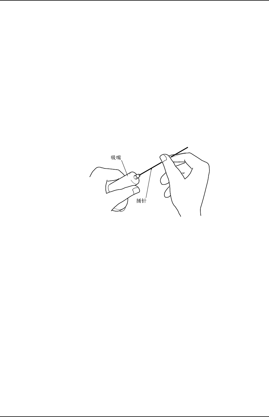 请使用适当尺寸的捅针,排除吸嘴内的异物。