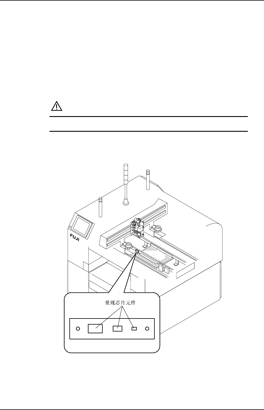 用于吸嘴旋转中心测定、加载回馈补正等的量规芯片元件被安装在规定的部位。由于进行定