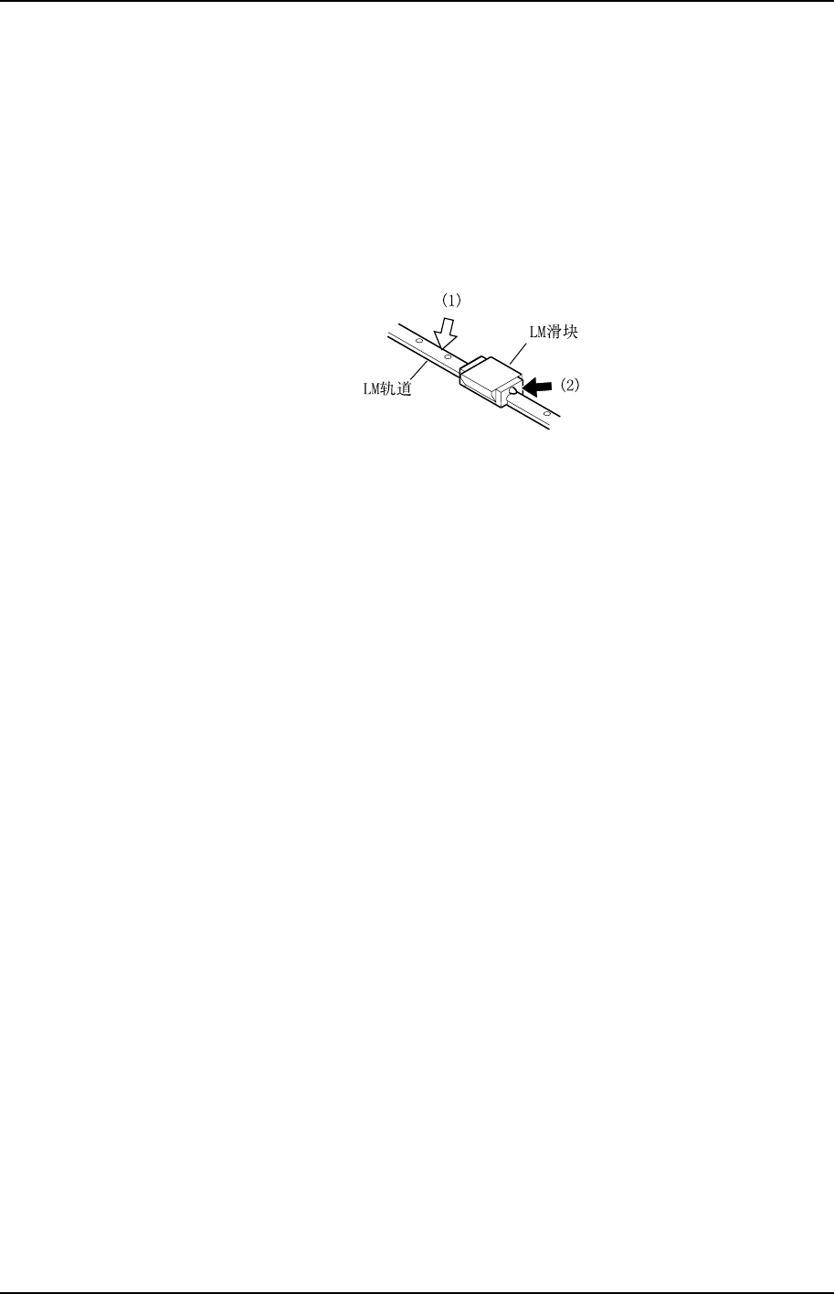 备注) 不带喷油嘴的 LM 挡块,通过挡块和 LM 轨道之间(轴承槽部)涂抹润滑油,付着在轴承