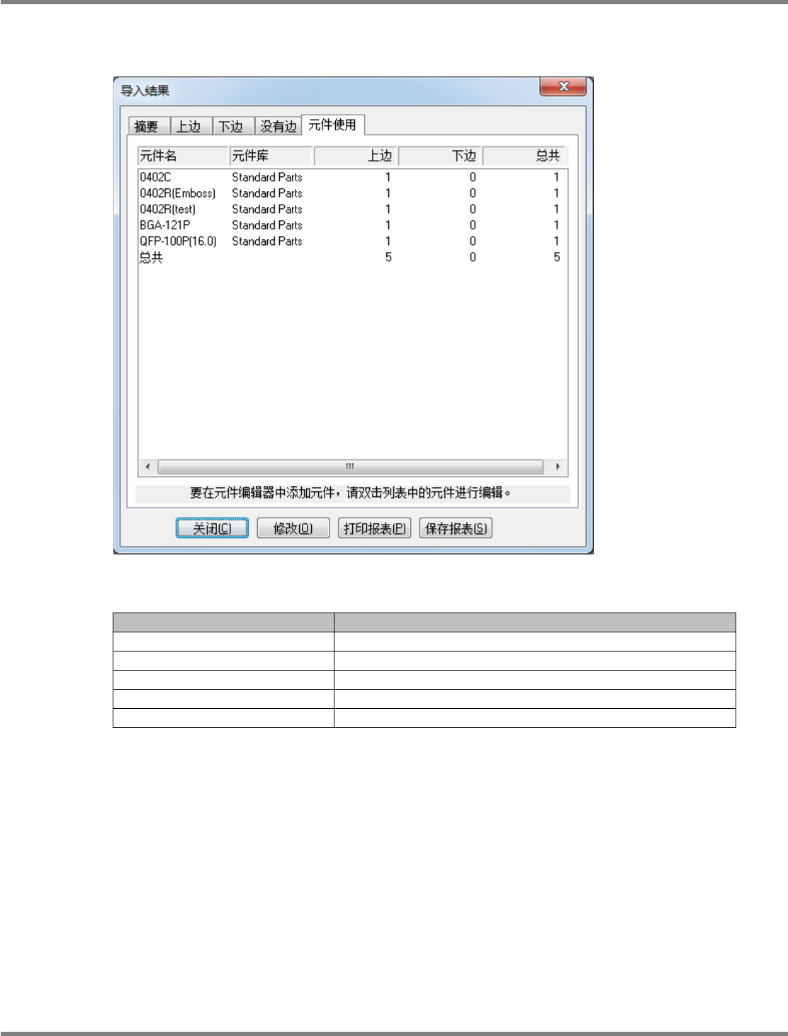 显示实装元件点数。