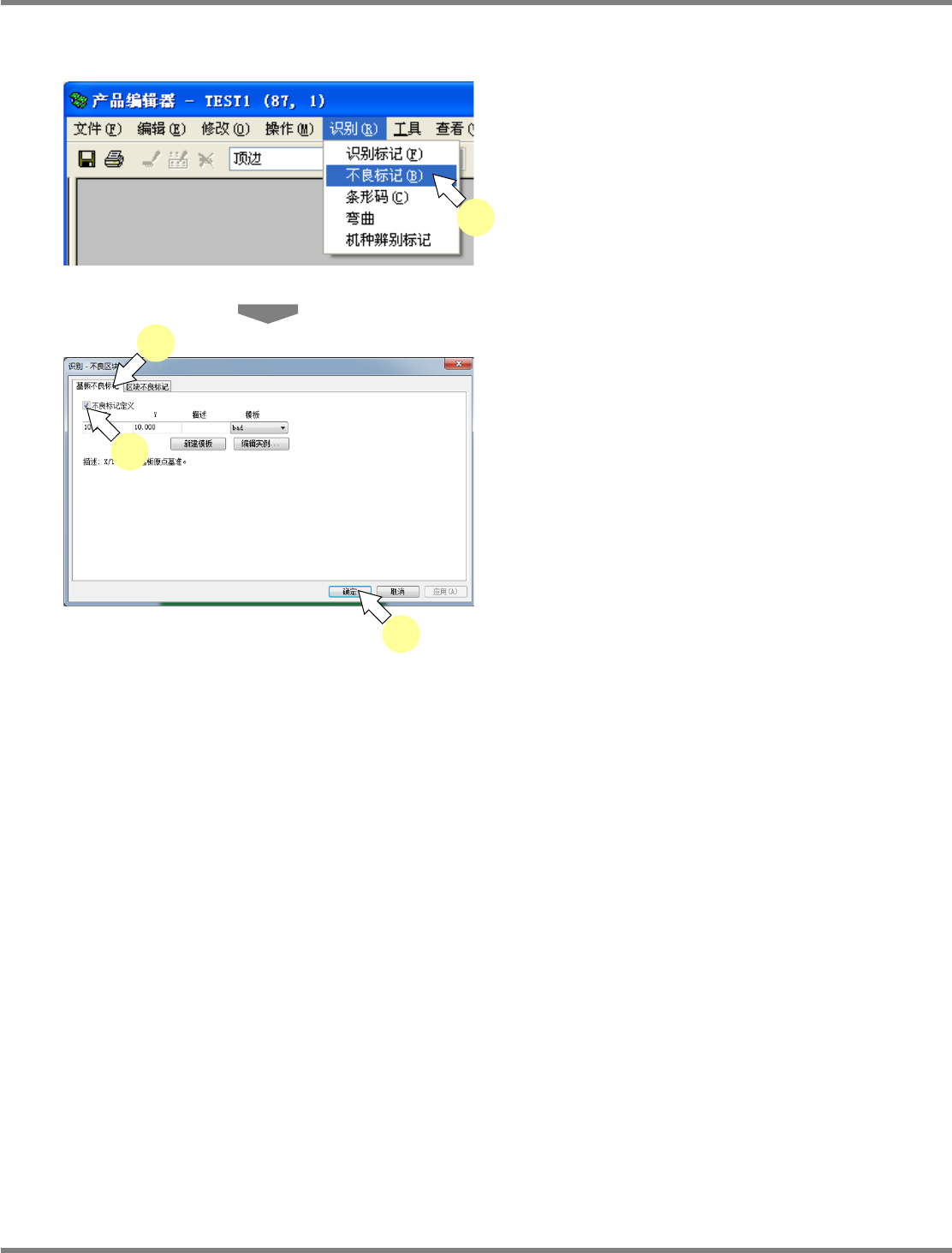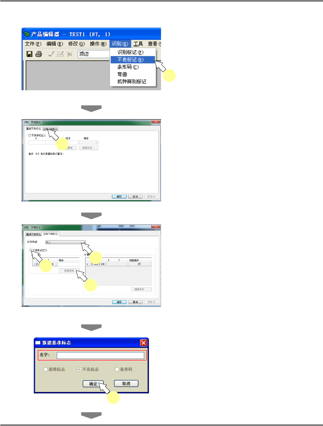 ① 添加新建的区块不良标记