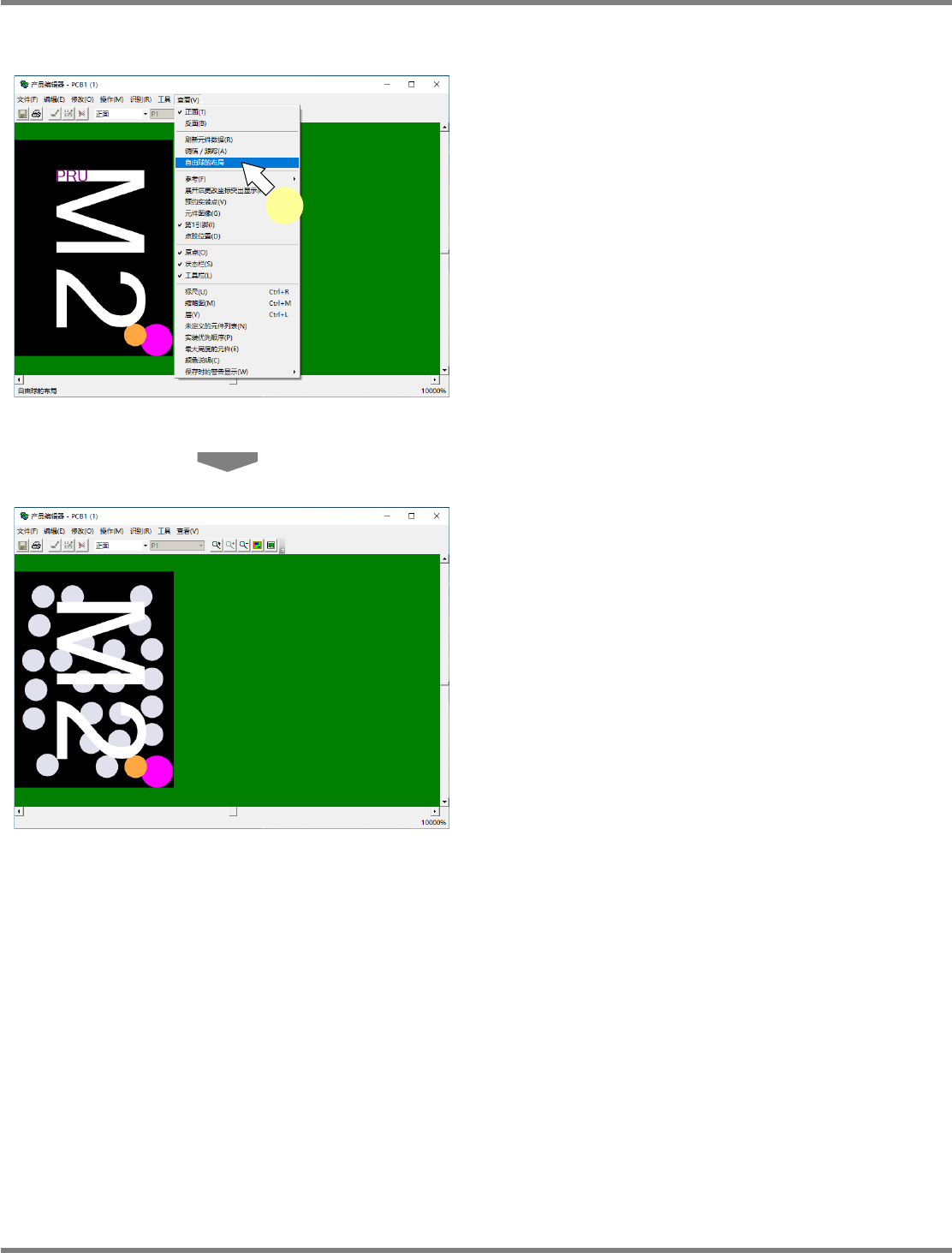 NPM-DGS 程序手册 5.8 PCB 编辑 EJS9AC-MB-05P-31 Page 5-237 铜箔 / 跟踪的显示 1 选择菜单栏的 [ 查看 ] [ 铜箔 / 跟踪 ] 。 铜箔 / 跟踪的选择,只可在 Gerber 数据下或设 定有背景数据时选择。 Gerber 数据 / 背景数据的设定 5.8.1 基板 信息 ■ 向基板示意图导入 Gerber 数据、 5.8.1 基板信息 ■向基板示意图导入背景数据 完…