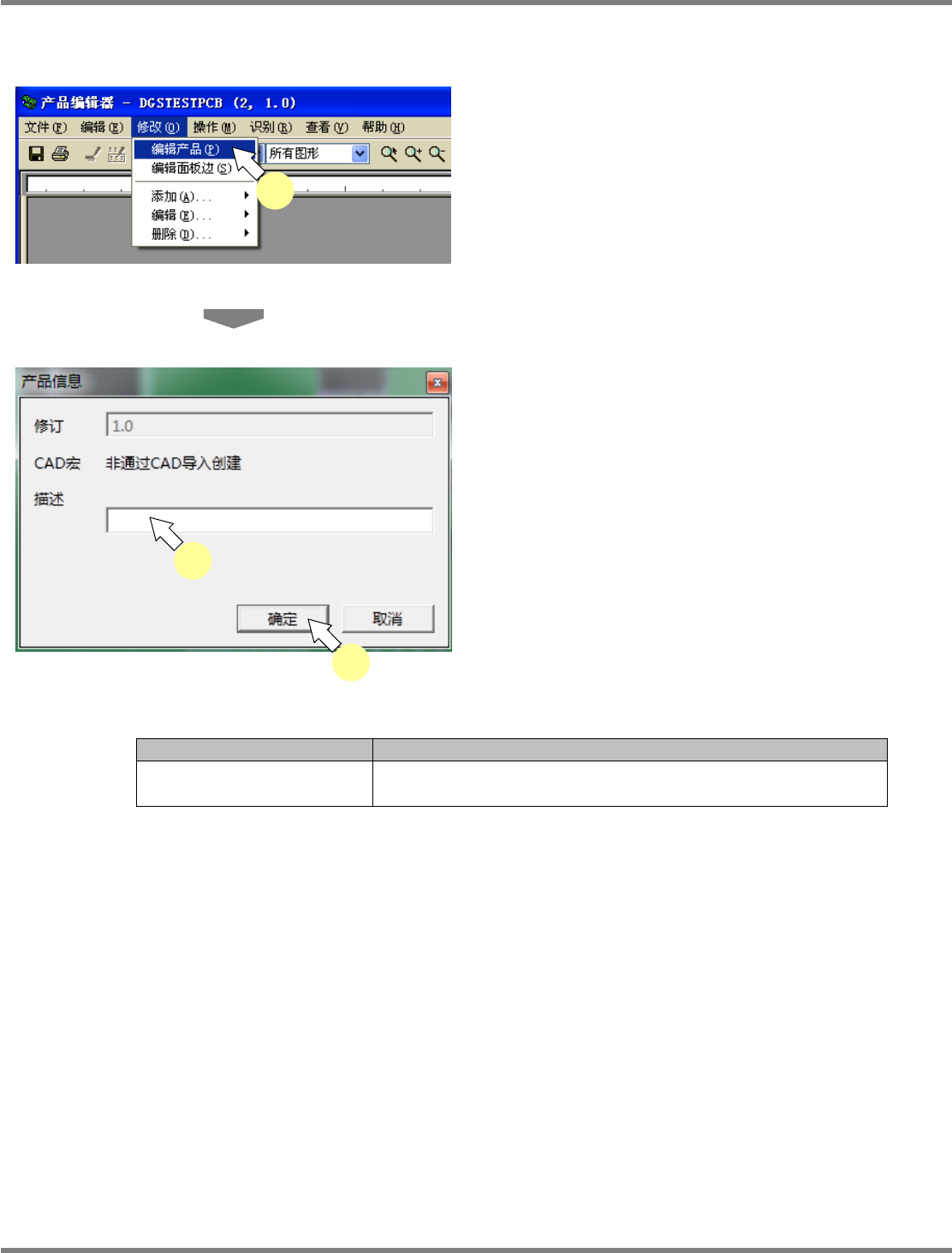 所设定的描述被显示在产品管理的